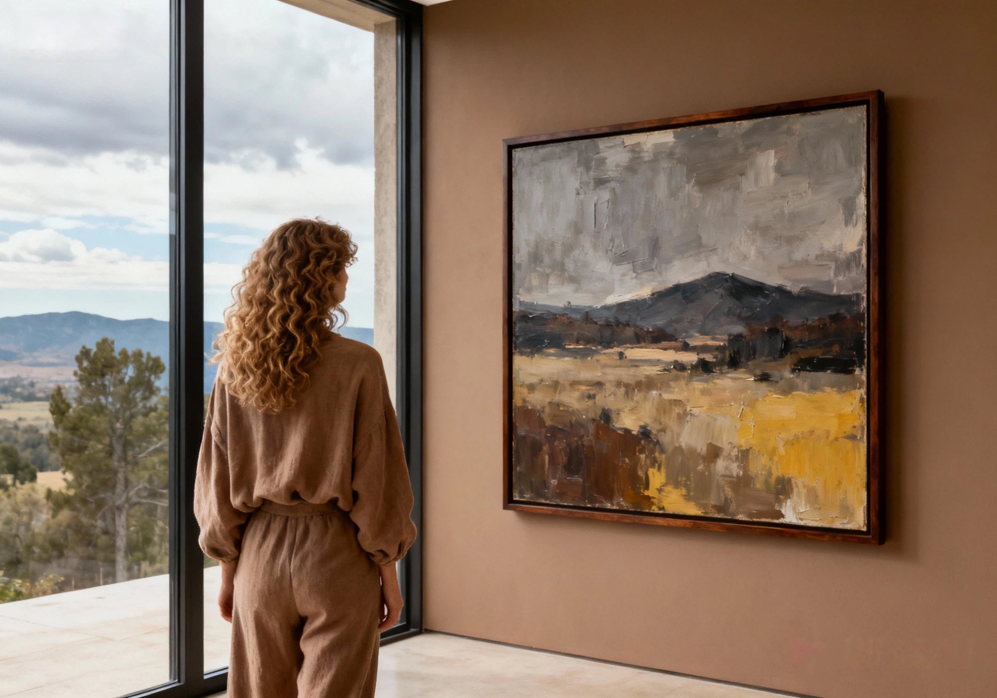 Finally, the moment of arrival. Once hung, the painting transforms your wall and space, infusing it with personality, light, and the quiet power of creation.